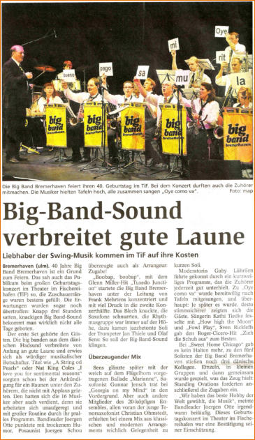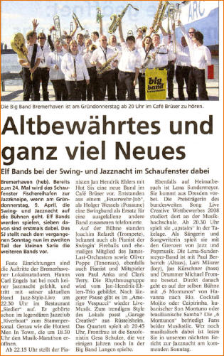 ...Das größte Aufgebot an Musikern - mehr als 15 - präsentierte die Big Band Bremerhaven im "Café Brüser". Mit