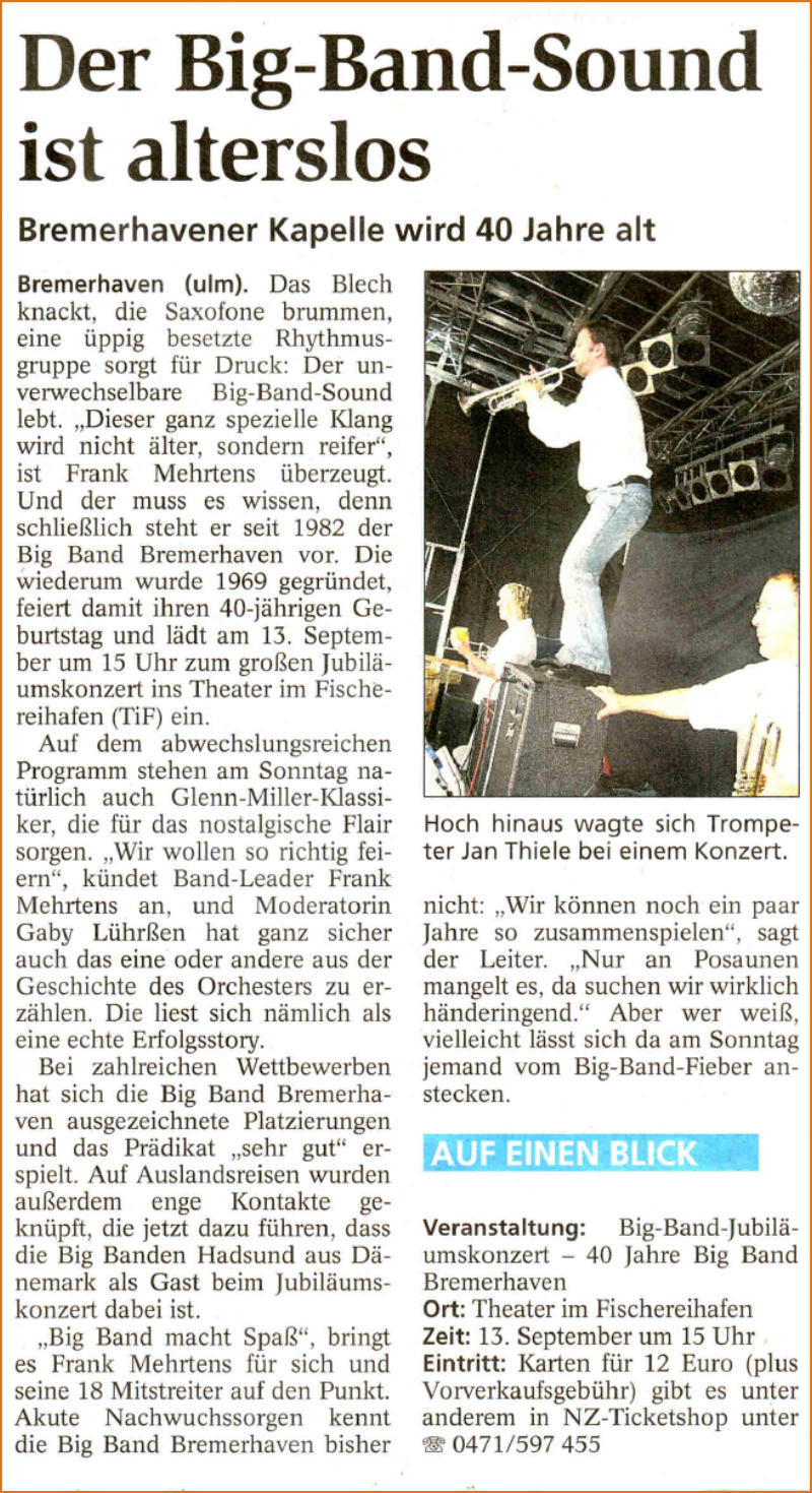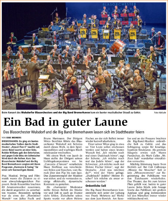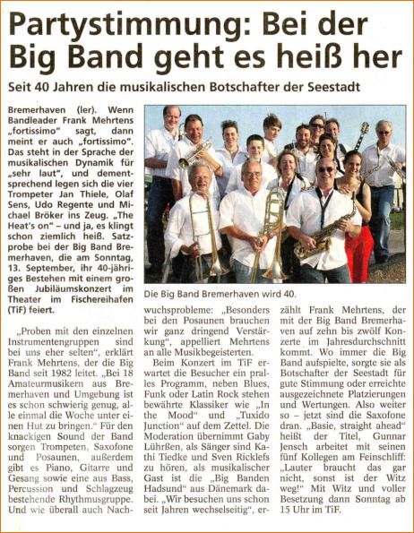 Mitte. Die Bremerhavener Big Band spielt am Sonnabend, 7.