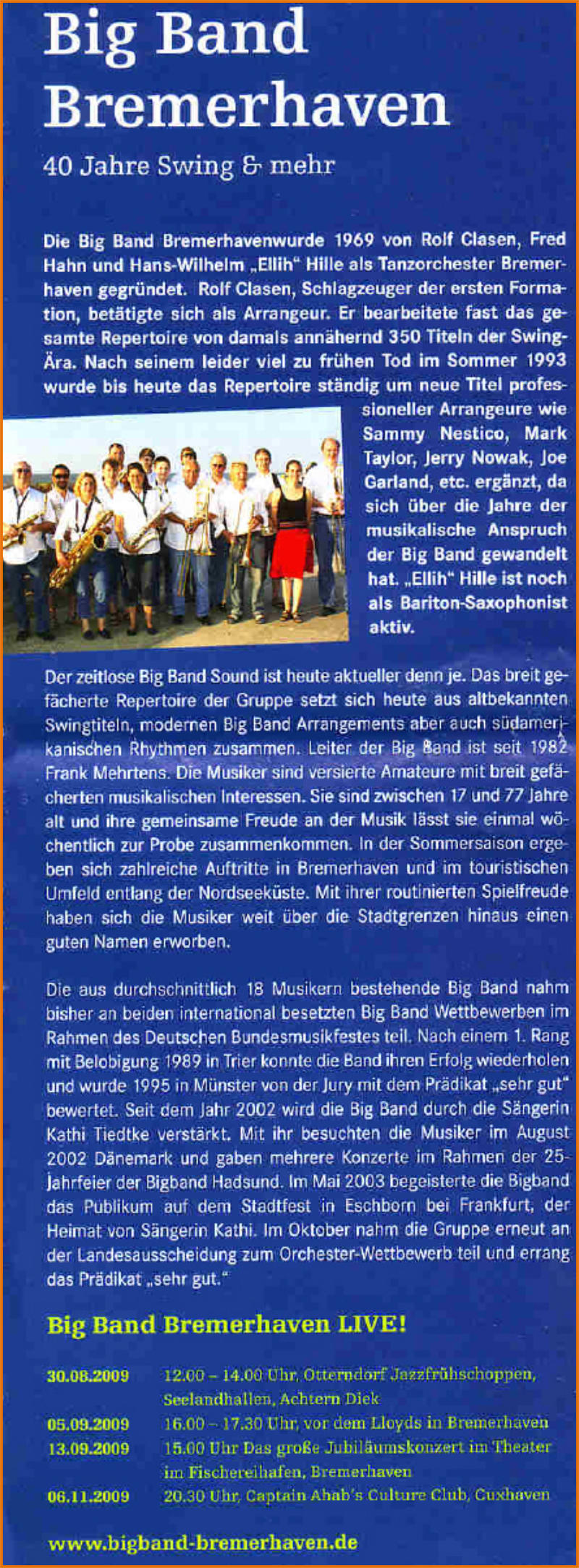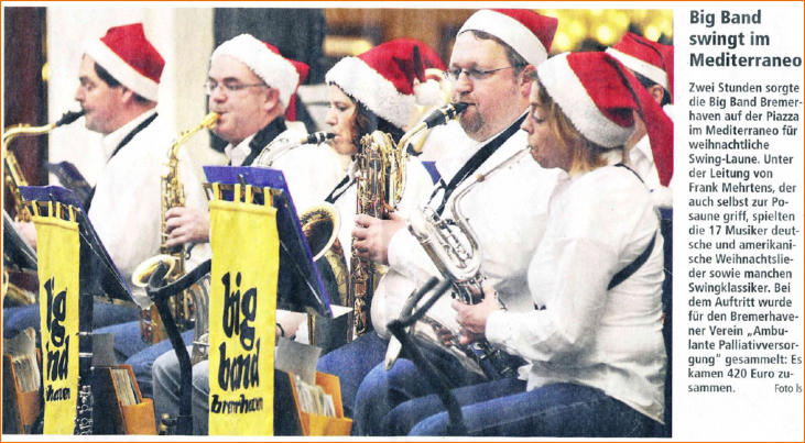 Mitte. Die Big Band Bremerhaven spielt morgen um 15 Uhr im